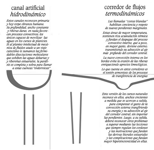 Francisco Javier de Amorrortu, in his writings on the site alestuariodelplata.com.ar presents a very critical view of what he calls “mechanical hydrology”, the “pipe hydraulics”. That is, the way in which engineering and water management often reduce river phenomena to simple balances of flows, pressures and canalization works.